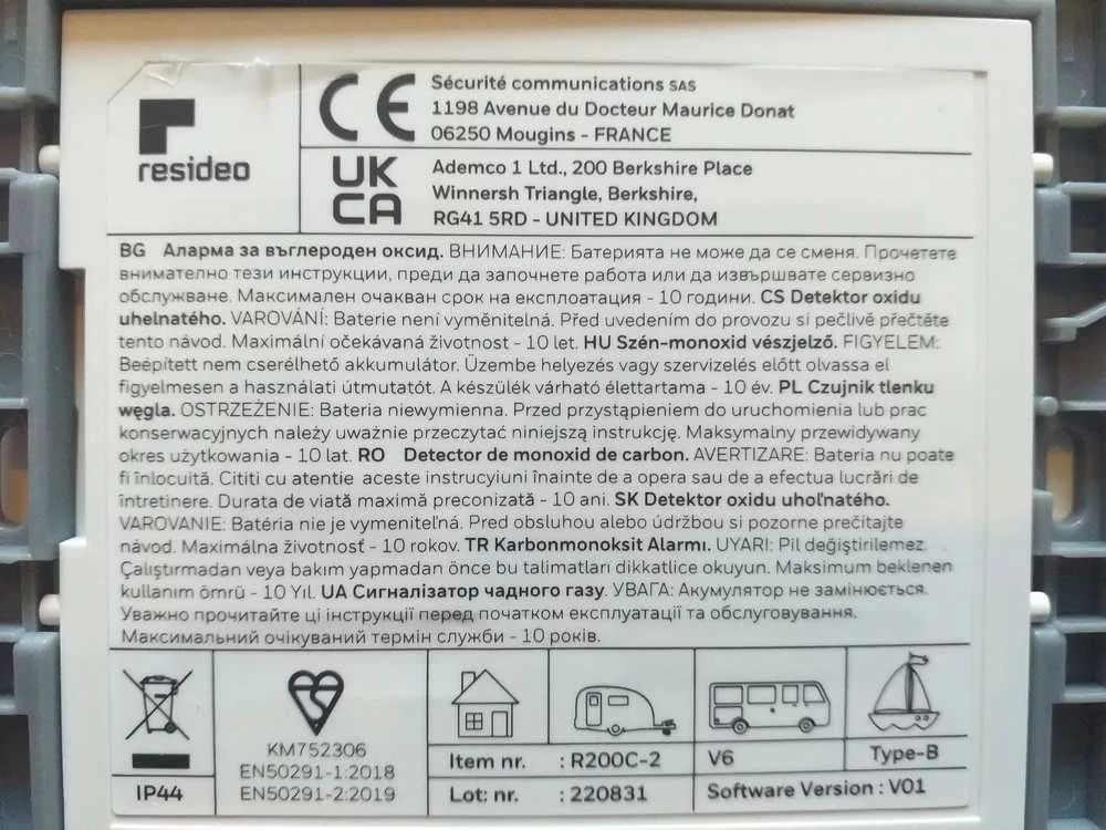 Honeywell Home R200 CO Szénmonoxid érzékelő - R200C-2