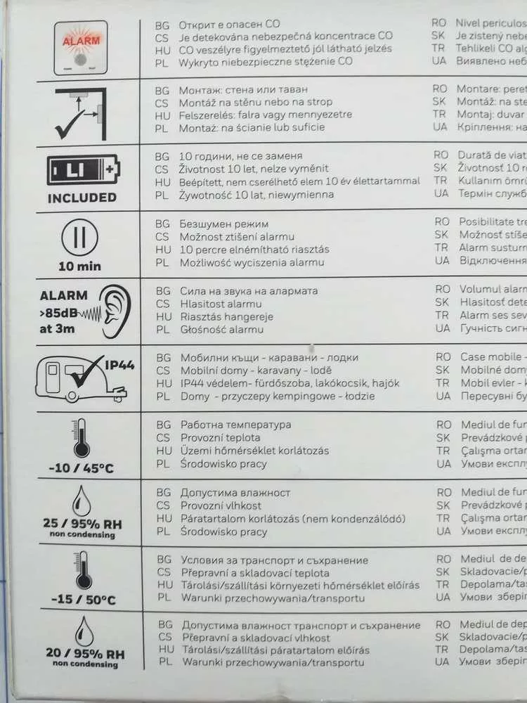 • Szén-monoxid veszélyre figyelmeztető hangjelzés